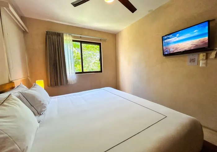Comfortable and bright room with a king-size bed and an exterior window for plenty of natural light.